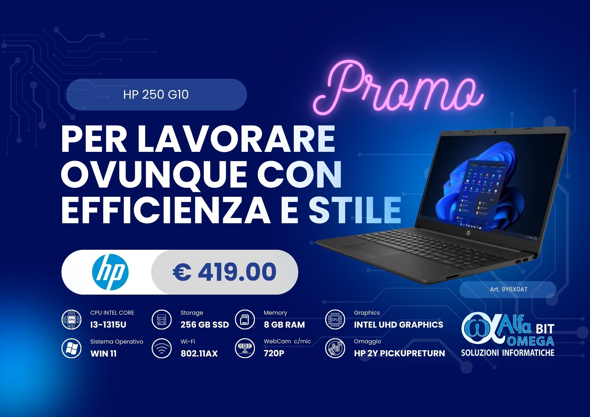 HP 250 G10 è un notebook professionale, progettato per offrire affidabilità e prestazioni costanti a chi lavora in ufficio, in mobilità o in smart working. Con un design sobrio e componenti aggiornati, è lo strumento ideale per attività quotidiane e produttività.